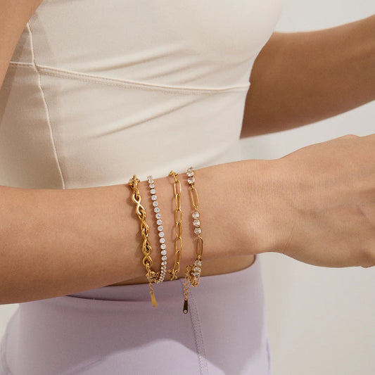 "Honestly the best gift I’ve ever bought for myself. The bracelet is delicate, yet solid, and the shine hasn’t dulled at all despite wearing it every day, even in the shower. I love knowing it’s hypoallergenic too — no redness or discomfort at all."