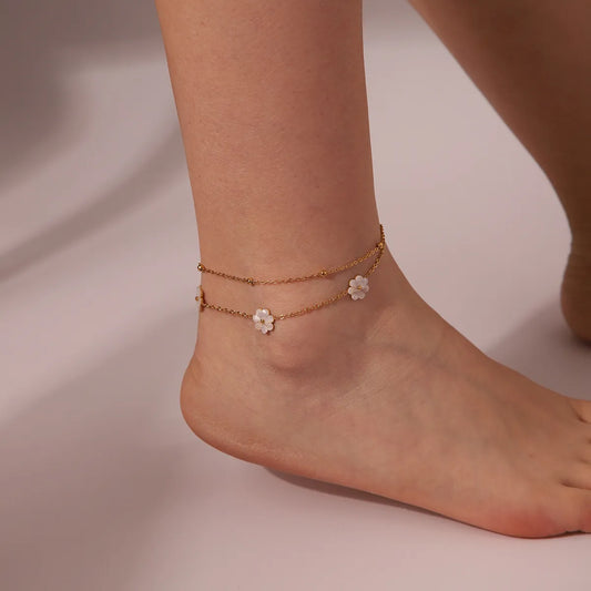 Camille White Flower Anklet