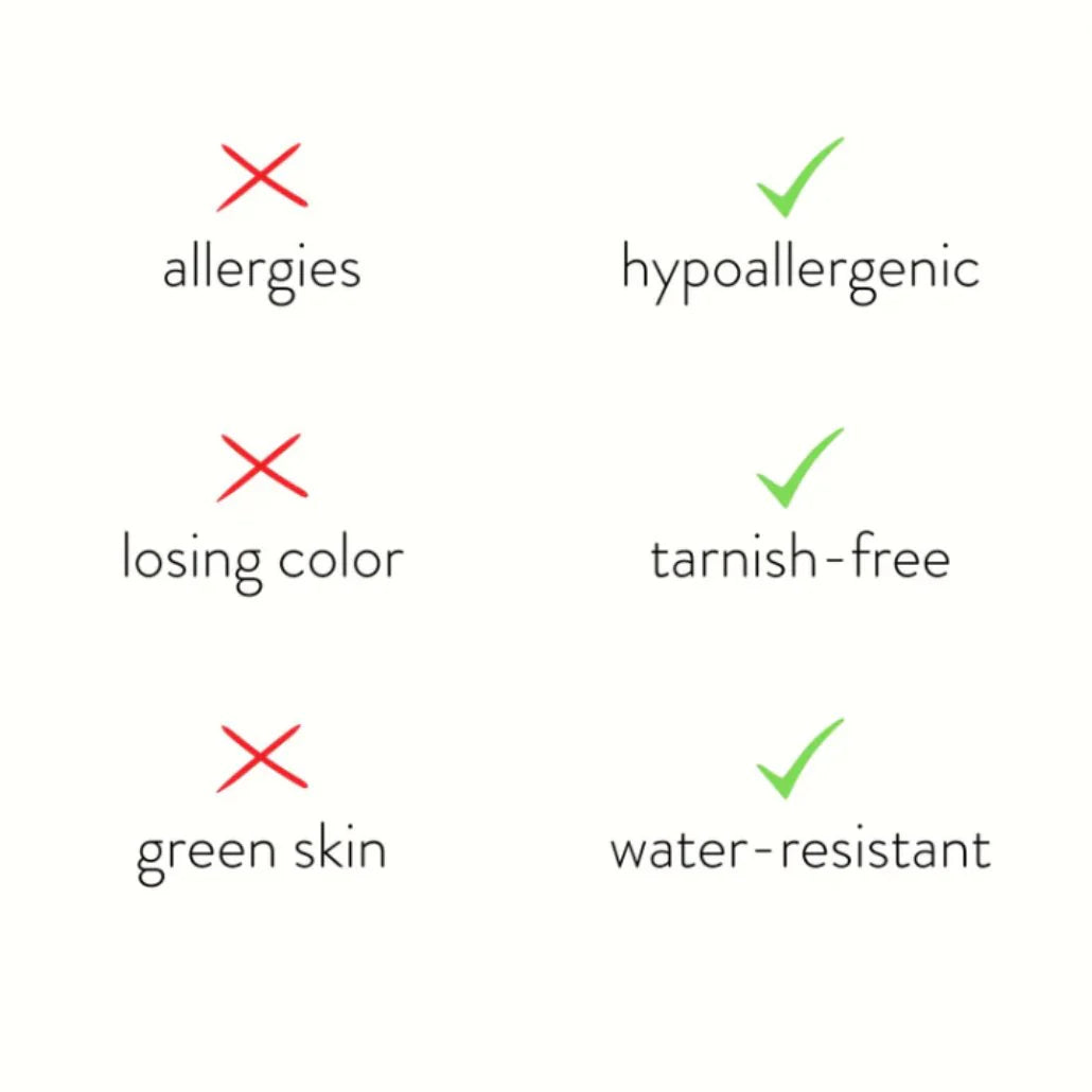 Our entire jewelry collection is crafted from top-quality stainless steel and plated with 18k gold through Physical Vapor Deposition (PVD).